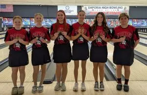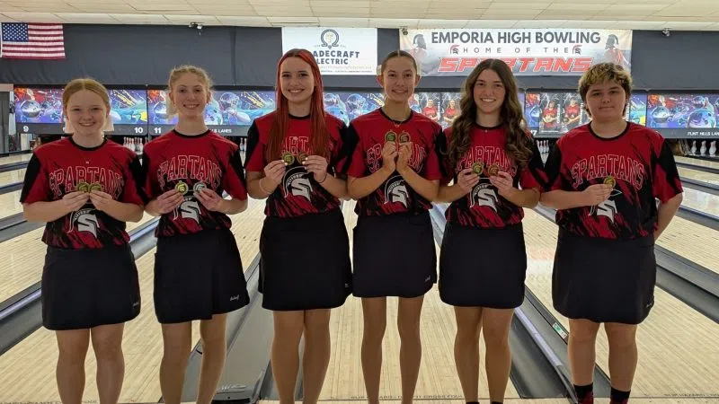 Emporia girls and boys bowling both finished first at Flint Hills Lanes in Emporia on Monday. The Lady Spartans took gold with a score of 2749. Taylor McKay was the top individual with a series of 576. Emporia travels to the Centennial League meet in Manhattan on Wednesday.
